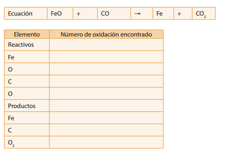 Determine el número de oxidación de los elementos de cada compuesto de la ecuación.