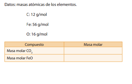 Determine la masa molar de algunos compuestos de la ecuación dada en el literal