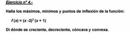 Al ser máximo en x=0 antes es creciente y después decreciente. Al ser mínimo en 2 después es creciente