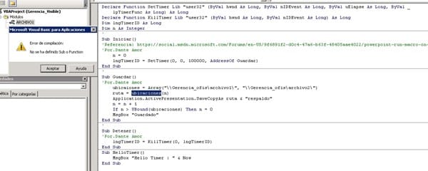 'Referencia: https://social.msdn.microsoft.com/Forums/en-US/9f6891f2-d0c4-47a6-b63f-48405aae4022/powerpoint-run-macro-on-timer?forum=isvvba