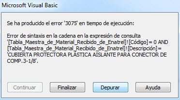 StrSQL = StrSQL & " WHERE [Tabla_Maestra_de_Material_Recibido_de_Enatrel]![Código]= " & Me.[Seleccionar_Código].Column(0) & " AND " & "[Tabla_Maestra_de_Material_Recibido_de_Enatrel]![Descripción]= '" & Me.[Descripción_Campo] & "'"