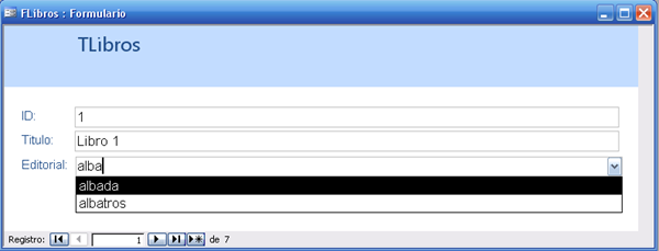 Respecto a lo de "limitar en la lista" lo tengo en "sí" porque los elementos que se despliegan del combo los extraigo de una segunda tabla "editorial" y tengo para ingresar o no nuevos elementos, el evento "NotInList" con un msgbox yes/not.
