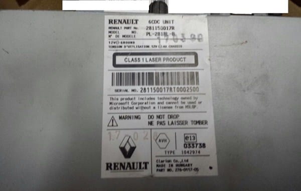 Necesito el código del radio cd cabasse Tronic modelo pl-2818l-b y numero de serie 281150017RT0002500 de un laguna 3 del 2007