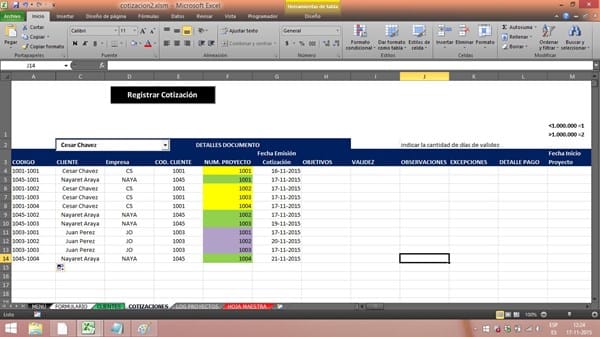 Generar un código según la cantidad de proyectos de una persona (macros)