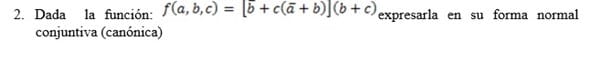 Matemáticas Oscar Pérez el 16 nov. 15 Algebra Booleana para mi curso de matemática discreta Resolver la siguiente función, me han comentado que debe ser con tabla conjuntiva Seguir Siguiendo Dejar de seguir