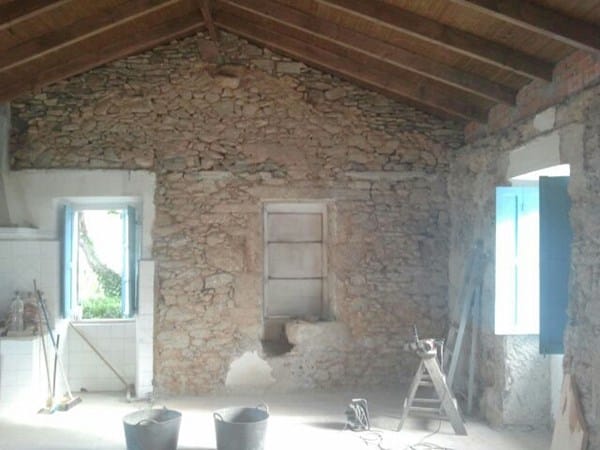 Por otro lado, he picado parte de dos paredes para dejar la piedra a la vista y quisiera tratarlas y limpiarlas ( esto último me da miedo pq las piedras son muy pequeñas y con una pistola de agua a presión podría cargarmerlas, se ven bastante limpias)