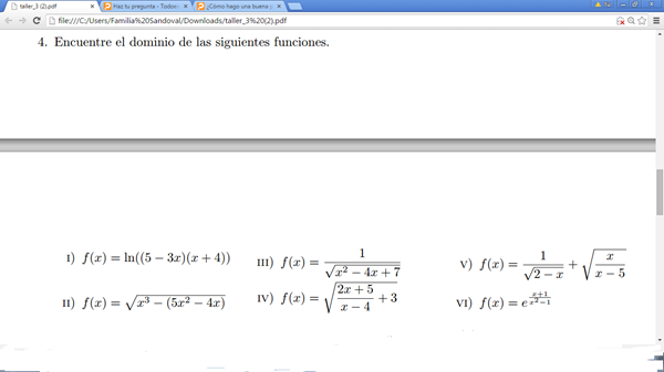 Encuentre el dominio de las siguientes funciones. Con procedimiento