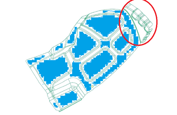 Por el contrario, la zona del círculo rojo, tiene direcciones perpendiculares, y lo más probable es que la forma final se proporcione con otras matrices en diferentes pasos.
