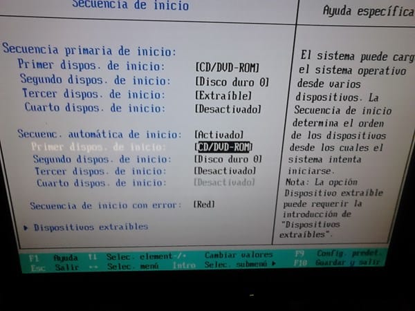 2. Inicias el sistema con el disco del sistema operativo insertado en la lectora de CD o DVD,