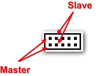Conseguí un puente, solo que tengo una duda, así como están los del DD, no le muevo nada entonces, ¿y simplemente al lector el puente lo pongo para hacer al Lector como master verdad? Y es colocándolo a la orilla como indicas en esta imagen: