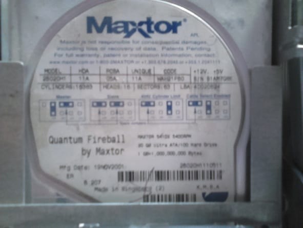 Tengo ocupada la lectora en otra PC (apenada) pero me fije que el disco duro de la Maquina, tiene 2 jumpers, uno así: | y el otro en medio parte superior pero acostado: -, mejor lo hago con esta imagen: