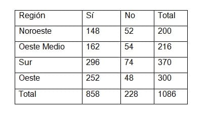 Los conceptos básicos de una tabla de contingencia a partir de una situación específica.