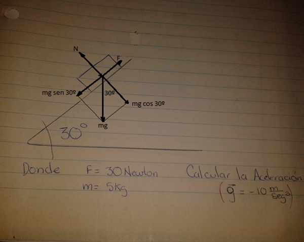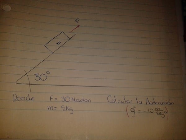 Como podría realizar este ejercicio de dinámica, para calcular la aceleración con una gravedad de -10m/seg^2