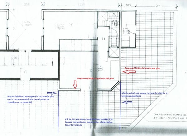 La questión es que hoy he consultado los planos originales del edificio, y en ellos consta que un trozo (que actualmente es de la terraza comunitaria) es en realidad de mi piso.