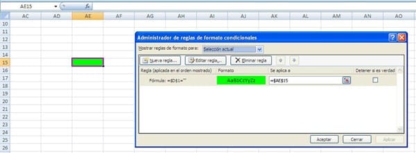 Colorear una autoforma en excel según el formato de una celda con formato condicional