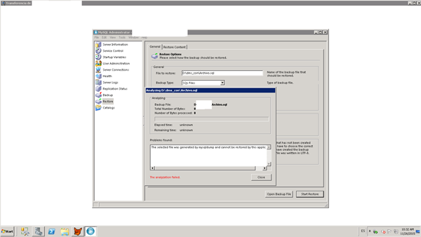 Resulta que intento restaurar una base de datos que hice en xampp -> Phpmyadmin y estoy intentando montarla en el servidor que trabaja mysql workbench y no me deja restaurar, aparece algo como "sqldump" y no deja...