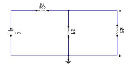 Puenteando a con b te quedaria solamente 12 Volts en serie con 500 ohms lo que te da una Fuente de corriente Norton de 0.024 A