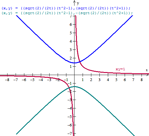- Halle la ecuación que resulta al girar 45° la ecuación XY=1