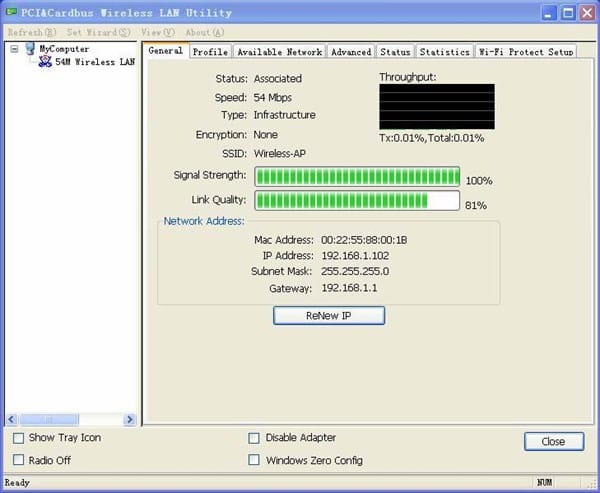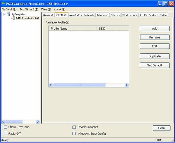 ? Show Tray Icon: Show PCI/Cardbus Wireless LAN Utility icon in the windows toolbar.