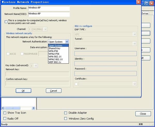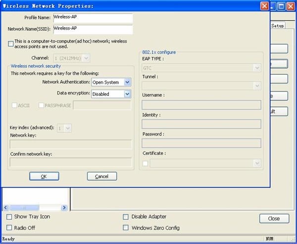 ? Windows Zero config: Enable this button if you want to configure wireless adapter by