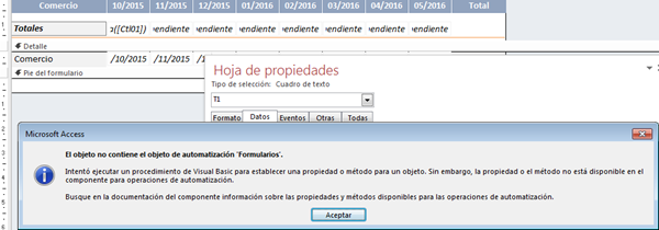 En un formulario continuo que me trae datos de una consulta de referencias cruzadas, no puedo totalizar las columnas con un control en el pie del formulario: (Suma([Ctl01]). Me trae error.