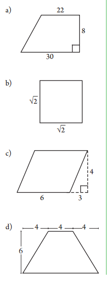 En los ejercicios a) a d) calcula el área de cada figura. Hazlo de dos formas distintas en las figuras que tienen líneas interiores.