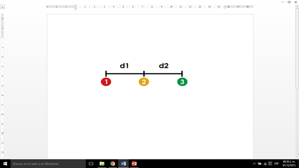 En cierto instante la distancia entre el ión1 y el 2 es de 1μm (1x10-6 m) y la distancia entre el ion 2 y el 3 es de 2μm (1x10-6 m).