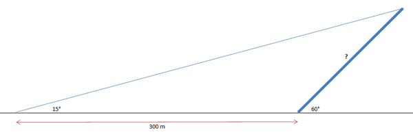 Calcular la longitud de la ladera de un montículo que tiene una inclinación de 60 grados sabiendo que a 300 m de la base se obse