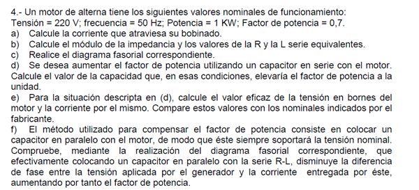 Una vez corregido el factor de potencia... podes recalcular tensión en bornes y corriente en el mismo. Tension = 220 Volts. Corriente = 1000 / 220 = 4.55 A aprox. Su producto da ahora la potencia al eje = 1000 Watts. ( Ya que no ternias indicada otros tipos de perdidas). En definitiva mediante la compensación reducistes la corriente real de la red que te estaba tomando la máquina.