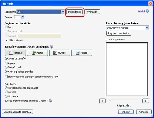 He descargado un libro de Google Books en formato PDF. Ya lo tengo guardado en mi computador, pero cuando quiero imprimirlo, en forma de folleto, para que quede impreso como un libro, las páginas se ven muy pequeñas; me explico: en una hoja carta no alcanza a ocupar toda la hoja, sino la mitad.