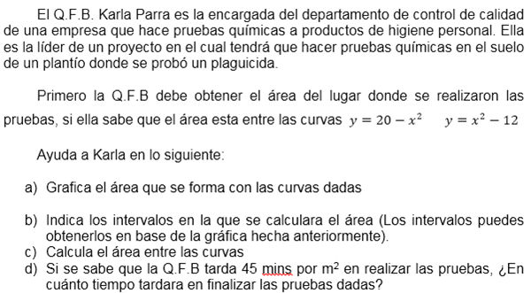 Resolver el siguiente problema de Aplicación de la integral en la industria, sobre el área entre curvas dadas