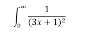 $$\begin{align}&\int_0^{\infty}\frac{dx}{(3x+1)^2}=\lim_{R\to\infty}\int_0^R \frac{dx}{(3x+1)^2}=\\&\\&\text{Es medio directa, pero la haremos con cambio de}\\&\text{variable y así aprendes más. Sobre todo, fíjate que}\\&\text{yo cambio los límites a la vez que la variable, así}\\&\text{no tengo que hacer el descambio después.}\\&\\&t=3x+1\\&dt = 3dx\implies dx =\frac 13dt\\&x=0\implies t=3·0+1=1\\&x= R \implies t=3R+1=S\\&\\&\text{No vamos a hacer el tonto operando con 3R+1}\\&\text{pondremos una S que tiende igual a }\infty\\&\\&\lim_{S\to\infty}\frac 13\int_1^S \frac {dt}{t^2} =\frac 13\lim_{S\to \infty}\left[ -\frac 1t\right]_1^S=\\&\\&\frac 13 \lim_{S\to \infty} \left(-\frac 1S+\frac 11 \right)=\frac 13(0+1)=\frac 13\end{align}$$Luego la integral es convergente y vale 1/3.