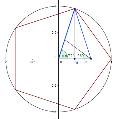 Cos 72 y cos 36 a partir Pentágono inscrito en circunferencia goniometrica