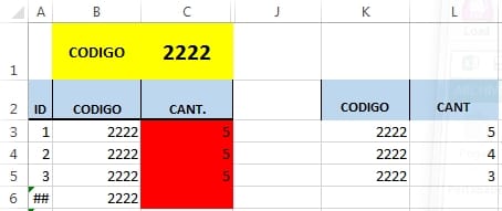Detalle: Coloco el código en la celda C1 y automático me arroja los números en la columna B