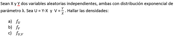 Hallar las densidades, para X y Y que se distribuyen exponencial.