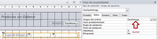 Me gustaría que me lo explicaseis bastante detallado, porque he visto alguna respuesta al respecto y no logro realizar, por ejemplo ponen, (desvincula el cuadro de opciones del campo donde quieres almacenar los datos", no logro desvincular. Esto lo haces seleccionando el grupo, activando la ventana de propiedades (Menú "ver", "Propiedades") y en la ficha llamada "Datos" borras lo que exista en "origen del control".