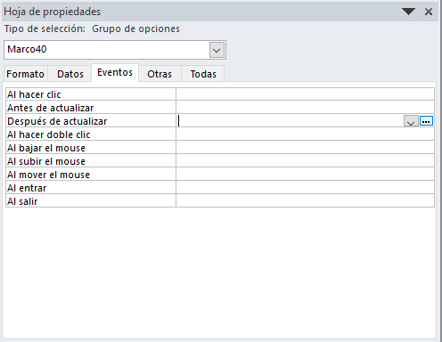 Luego en la misma ventana entras a la ficha "eventos" y escoges "Después de actualizar", al final aparecen ... Los oprimes y escoges "Generador de código" ) luego viene como generarlo.