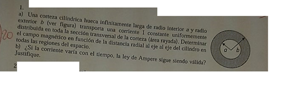 Aplicas la fórmula general y llegas a B= (muo/ 2 pi r ) I ( r2-a2) / (b2-a2)...