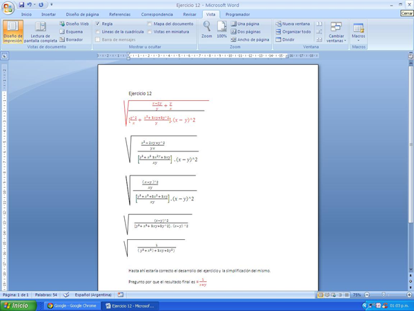 Solicito amigos del foro me digan si el ejercicio que envío en una imagen, esta bien simplificado hasta donde esta realizado, si no es así pido me corrijan los errores.