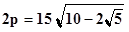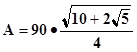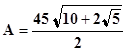 $$\begin{align}&A= \frac{P·a}{2}= \frac{15·\sqrt{10-2 \sqrt 5}·6·\frac{\sqrt 5 +1}{4}}{2}=\\&\\&\frac{90}{8}\sqrt{10-2 \sqrt 5}·(\sqrt 5 +1)=\\&\\&\text{para meter el segundo factor dentro de la raíz}\\&\text{hay que elvarlo al cuadrado}\\&\\&=\frac{45}{4}\sqrt{(10-2 \sqrt 5)(\sqrt 5+1)^2}=\\&\\&\frac{45}{4} \sqrt{(10-2 \sqrt 5)(5+2 \sqrt 5+1)}=\\&\\&\frac{45}{4} \sqrt{(10-2 \sqrt 5)(6+2 \sqrt 5)}=\\&\\&\frac{45}{4} \sqrt{60+ 20 \sqrt 5-12 \sqrt 5-20}=\\&\\&\frac{45}{4} \sqrt {40+8 \sqrt 5}=\\&\\&\frac{45}{4}·2 \sqrt {10+2 \sqrt 5}=\\&\\&\frac{45}{2} \sqrt{10+2 \sqrt 5}\end{align}$$