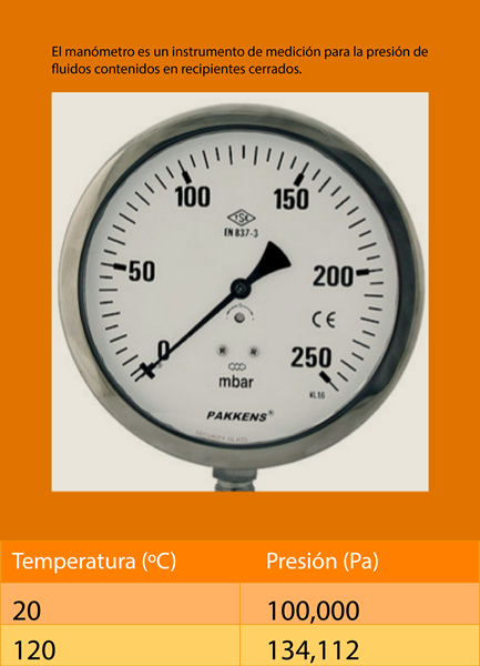 Al colocar un manómetro en una olla a presión se obtuvieron los siguientes datos: