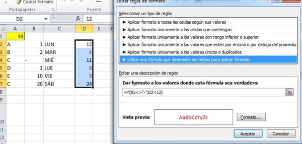 ¿Cómo colocar formato condicional a una celda, dependiendo el contenido de otra celda?