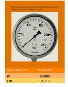 Al colocar un manómetro en una olla a presión se obtuvieron los siguientes datos: