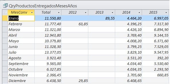 A su lado han de estar otras columnas de los siguientes ejercicios para hacer comprativas visuales de cada uno de los meses y años:
