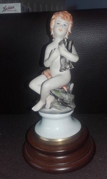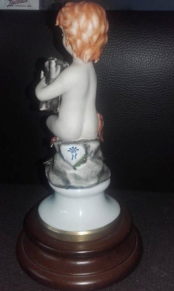 Tengo la siguiente estatuilla de porcela de marca italiana como se puede ver en una de las fotos. Mide unos 20cms con la peana de madera. Me gustaría saber algo más sobre dicha marca y una aproximación de su precio de venta.