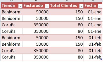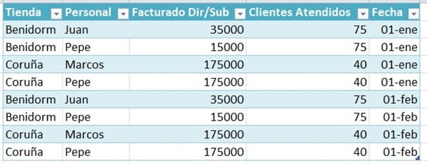 Necesito modificar un subtotales de una tabla dinámica. Parto de las siguientes BBDD de datos para formar la tabla