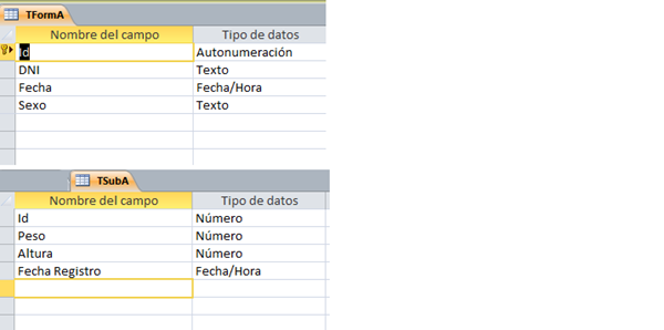2-Subformulario Llamado: SubA(donde guardo sus datos respectivos en su tabla)