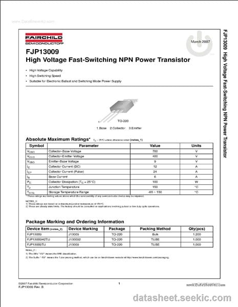 Aqui estan los datasheets del mje13009