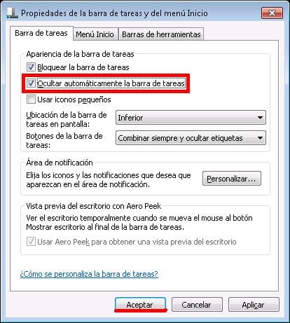 Barra de tareas con Windows 7 no se oculta