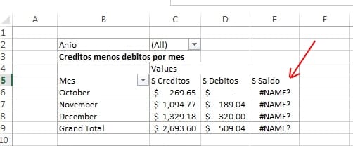 ¿En el cambio de una computadora a otra mi archivo me dio el error #name? En una tabla dinámica.